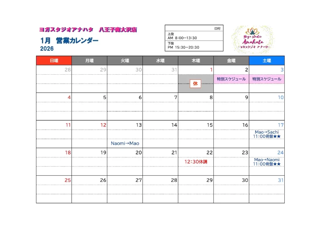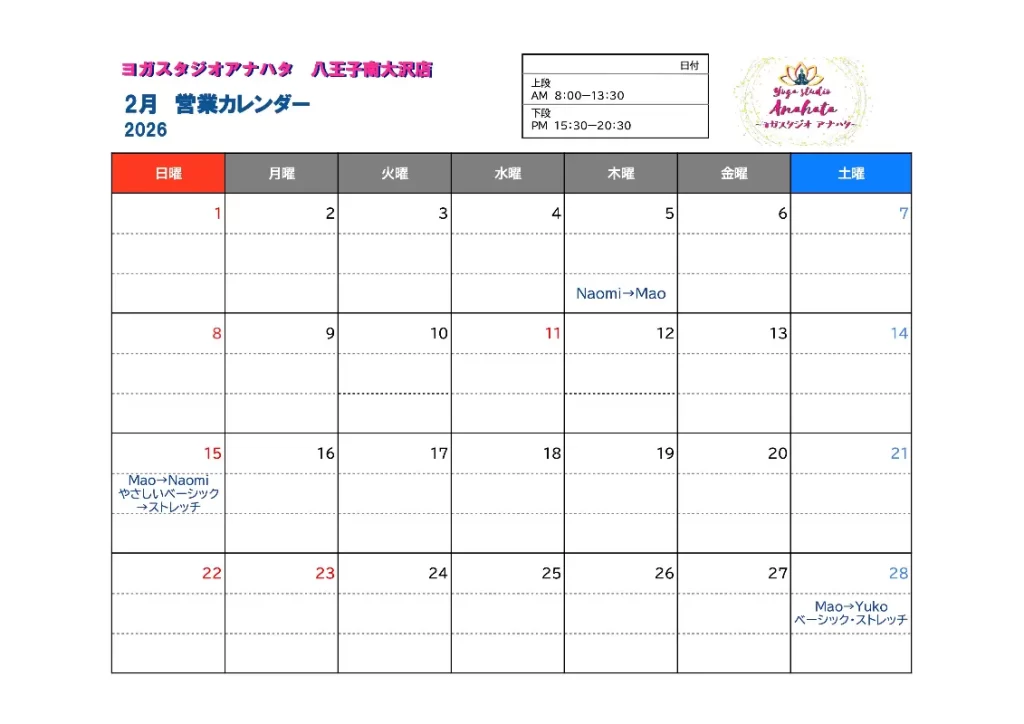 ヨガスタジオアナハタのレッスンを