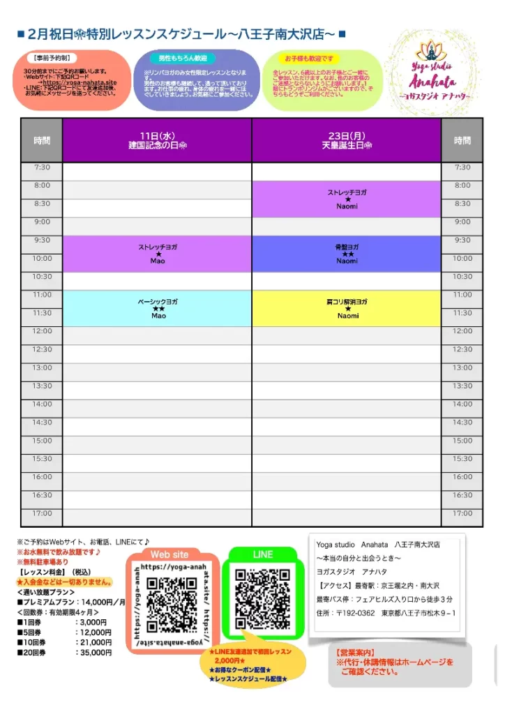 Anahata八王子店南大沢店公式LINE