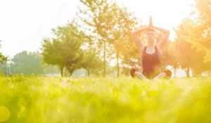 この、夏の自然な暑さと風の中でヨガをして、汗をかくと、